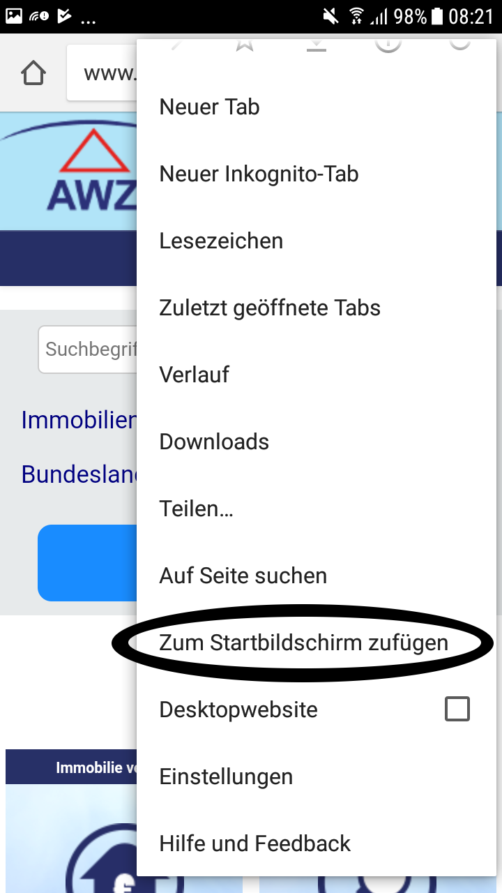 So legen Sie das AWZ Lesezeichen auf ihrem Startbildschirm an